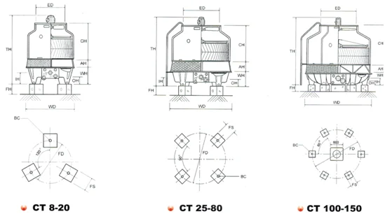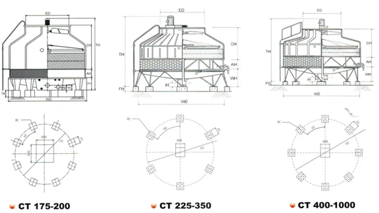1.La fondazione deve essere posizionata a livello e la linea centrale della torre di raffreddamento deve essere verticale. Altrimenti influirà sulla distribuzione dell'acqua e sul funzionamento del dynamo.